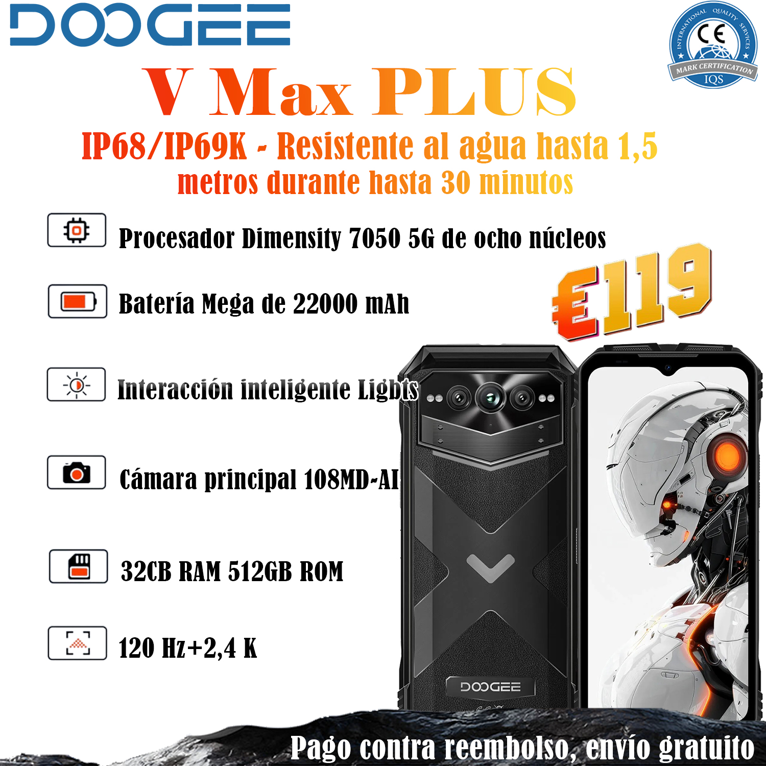 El Doogee V Max Plus es un smartphone robusto que admite carga rápida de 33 W,